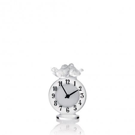 Orologio in cristallo trasparente H 15 cm. I passeri sono felici ogni giorno, mentre il tempo è mostrato sotto. René Lalique ha creato l'orologio Antoinette nel 1931, noto come "Clock of Eight Days". L'orologio Antoinette trascende il tempo con la sua eleganza.