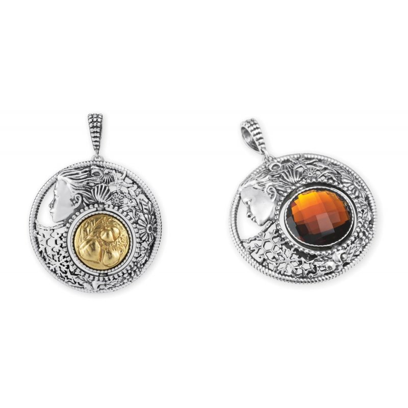 Ciondolo grande in argento 925 con cristallo sfaccettato, elegante e raffinato.