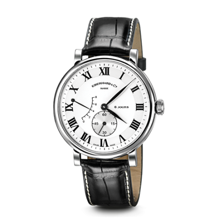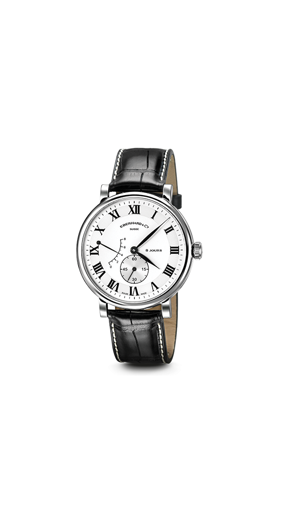 Nella collezione 8 Jours, tecnica, passione e tradizione si fondono, dando vita ad orologi meccanici manuali che si caricano una sola volta ogni 8 giorni. Sul quadrante si trova un indicatore dal dispositivo di funzionamento brevettato, la cui lancetta visualizza l’autonomia di marcia e ricorda per quanto ancora l’orologio segnerà il tempo. L’innovazione di Eberhard & Co. consiste in uno speciale dispositivo di carica brevettato formato da due molle sovrapposte che complessivamente superano il metro e mezzo di lunghezza.