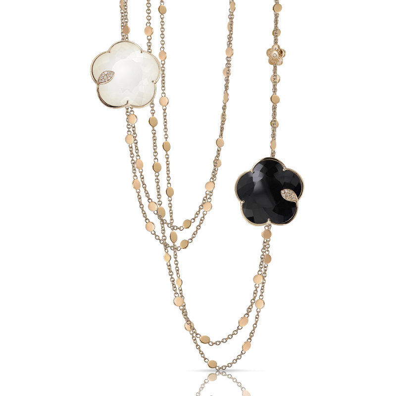 Collana PASQUALE BRUNI "Ton Joli" in Oro Rosa con Agata Bianca, Madre Perla, Onice, Diamanti Bianchi e Champagne