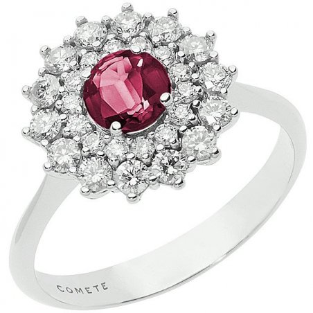 L'Anello Donna Gioielli Comete Orione ANB 2421 è un elegante gioiello della collezione Orione. Realizzato in oro bianco 750 ‰, questo anello presenta un rubino tondo di 0,68 carati e diamanti con purezza SI e colore G, per un totale di 0,53 carati. Le dimensioni del centrale dell'anello sono di 12,48 mm di diametro e 6,52 mm di spessore. Un pezzo raffinato e sofisticato, perfetto per occasioni speciali.