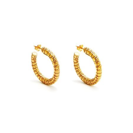 Orecchini Cerchio Croco in Argento 925 con bagno d'oro, fatti a mano.