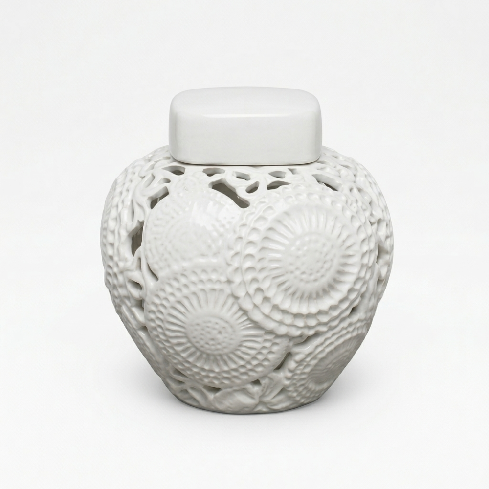 Potiche Bianca di Henriette in ceramica bianca, collezione Kyoto.