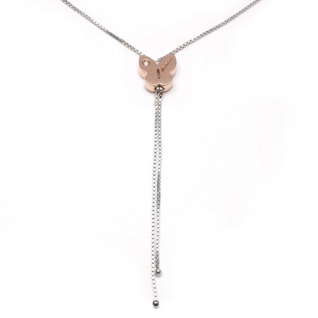 Collierino in oro bianco/rosa con diamante rotondo, caratura 0.01, colore GH.