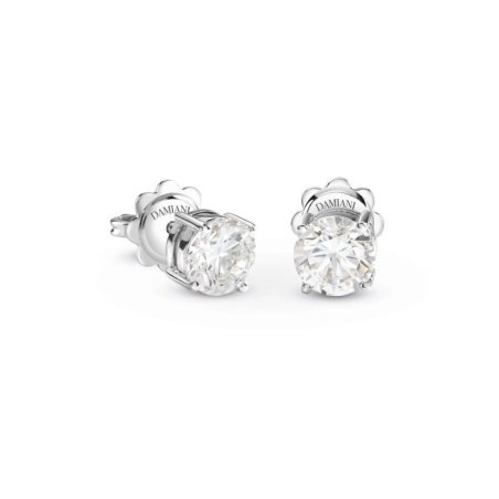 Eleganti orecchini in oro bianco con diamante Damiani, taglio rotondo e caratura 0.6.