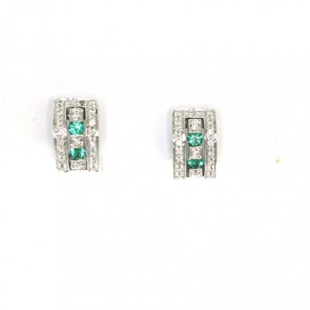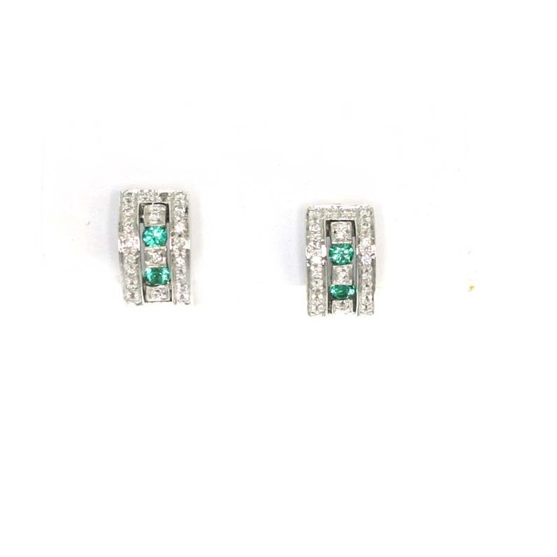 Eleganti orecchini Damiani in oro bianco con diamante e smeraldo, taglio rotondo.