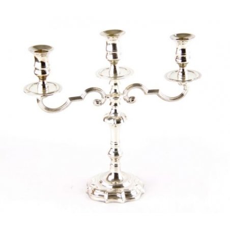 Featuring a classic design, the Royal Family Silver Candelabrum is perfect for setting the tone at a formal dinner. In Sheffield silver, this candelabrum has a round central base with two curving arms, each with a candle holder on top, allowing you to display three candles.,lunghezza cm 11,25 larghezza cm 33,12 altezza cm 30 peso netto gr 1802