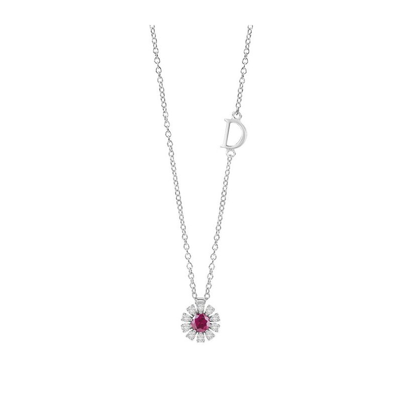 Collierino Damiani in oro bianco con diamante e rubino, taglio rotondo.