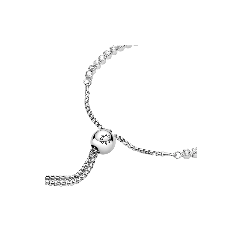 Questo sfavillante bracciale regolabile è irresistibile per qualsiasi donna. Rivisitazione moderna del classico bracciale tennis, il delizioso gioiello è realizzato in Pandora Rose, la nostra esclusiva lega metallica con placcatura in Oro rosa 14K. L'anello è sapientemente decorato da pietre di zirconia cubica incolori che aggiungono una brillantezza discreta a ogni look e la sua chiusura regolabile consente di adattarlo perfettamente a ogni polso.