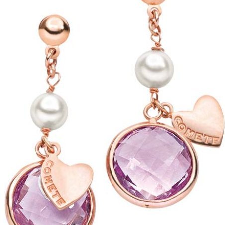 Orecchini in oro 18 kt con perle e ametista per un'eleganza femminile.