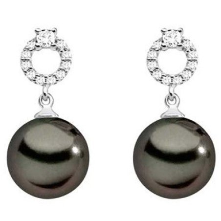 Orecchini eleganti con diamanti e perle Tahity di Comete Gioielli.