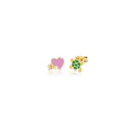 Orecchini Fortuna di Le Bebe' in oro giallo con cuore e tartaruga smaltati.