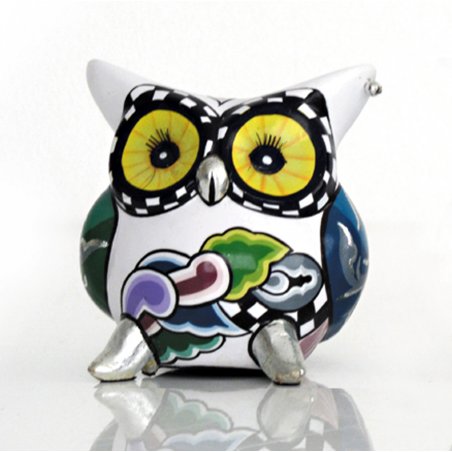 Gufo Berta: Per collezionisti e amanti del gufo. Simbolo di saggezza. Con il suo fantastico costume su tono bianco di base, è decorata come una sfilata di carnevale.