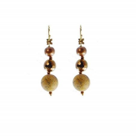 Orecchini con Perle Marroni, Ematite Brown, Agata Paesina e Argento.