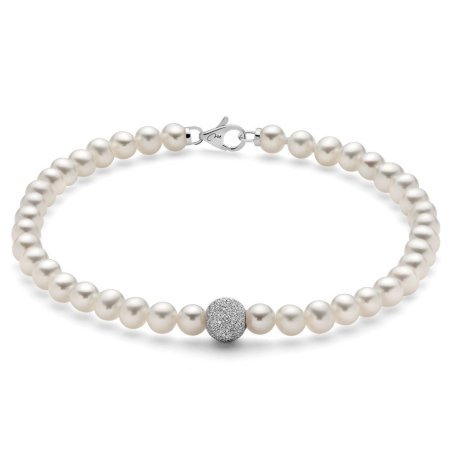 Bracciale di perle Oriente con sfera in oro bianco diamantata, elegante e raffinato.