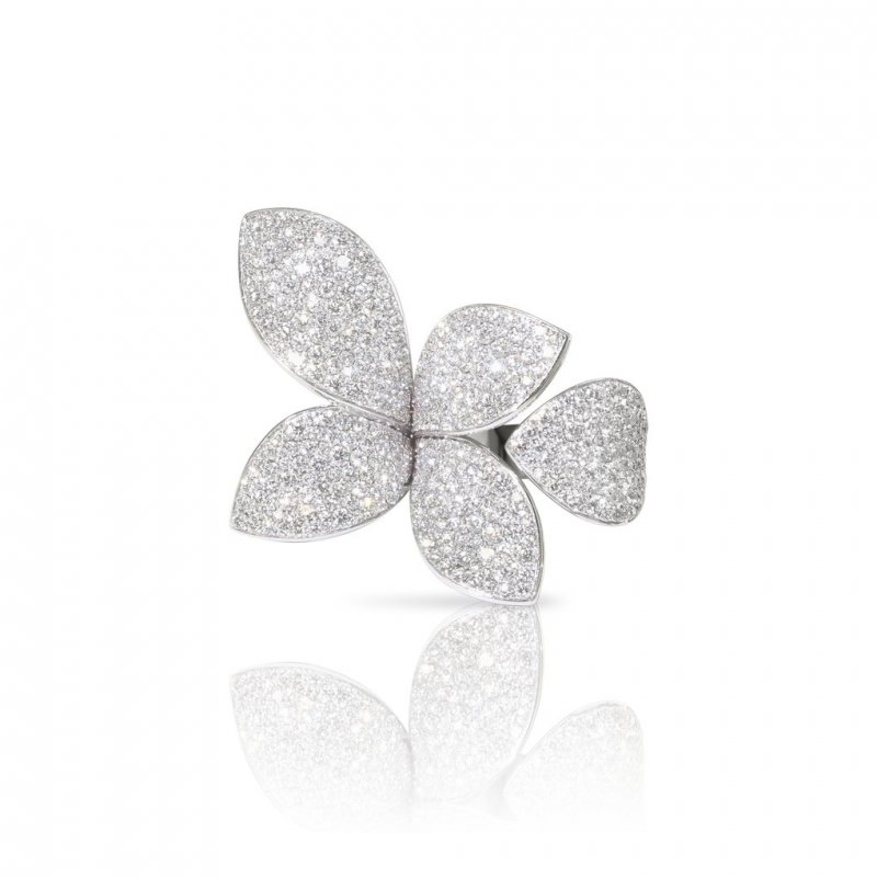 Anello cinque foglie Giardini Segreti in Oro Bianco 18 ct. con Diamanti Bianchi, Fiore Piccolo.