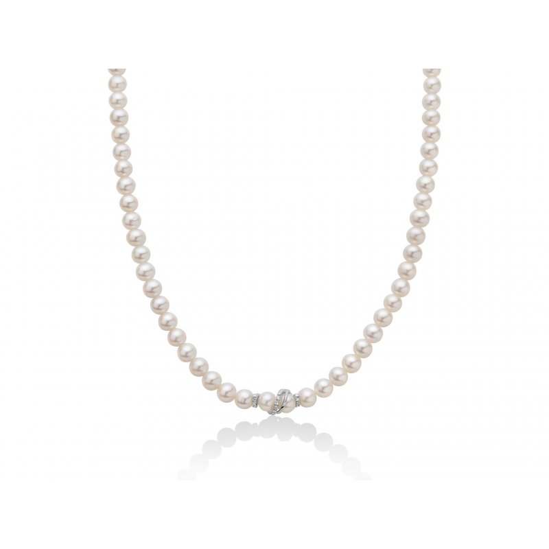 La Collana Au+Pc+Diam di Miluna è un gioiello elegante e raffinato, realizzato in oro 750/1000 e impreziosito da 12 diamanti naturali con un peso totale di 7,2 punti. I diamanti, di colore G e purezza SI, sono tagliati a brillante rotondo, conferendo alla collana una luminosità straordinaria. Inoltre, la collana è arricchita da perle vere di colore bianco, con un diametro di 5,5-6 mm, che aggiungono un tocco di classe e raffinatezza. Perfetta per ogni occasione speciale, questa collana è un simbolo di eleganza senza tempo.