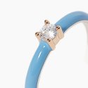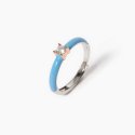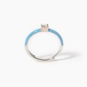 Anello solitario in argento smaltato azzurro con zircone bianco, misura regolabile.