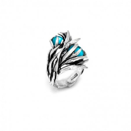 Anello Posidonia in argento con turchese, quarzo, madreperla e perla di Giovanni Raspini.
