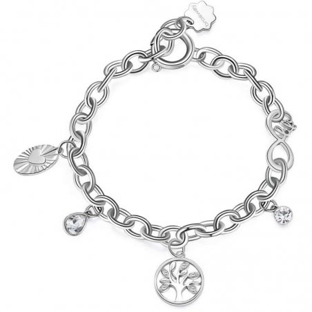 Bracciale Da Donna Di Brosway Della Collezione Chakra. Bracciale Realizzato In Acciaio Con Pendenti A Forma Di Albero Della Vita, Cuore, Infinito E Cristalli. La Chiusura È Con Moschettone. Lunghezza: 185Mm. La Referenza È Bhkb116