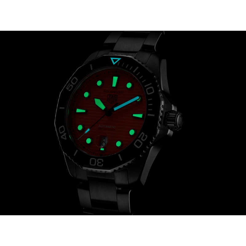 Il TAG Heuer Aquaracer Professional 300 Orange Diver è un orologio ispirato a un modello storico del 1979. Con un design audace e robusto, è perfetto per immersioni e avventure estreme. La cassa in acciaio da 43 mm e il quadrante arancione offrono un contrasto unico e una visibilità eccezionale, ideale per le condizioni marine. Il bracciale in acciaio è dotato di una fibbia di alta qualità con funzioni di sicurezza e un sistema di regolazione preciso, garantendo comfort ed ergonomia. Questo orologio è progettato per resistere a ogni sfida, unendo stile e funzionalità.
