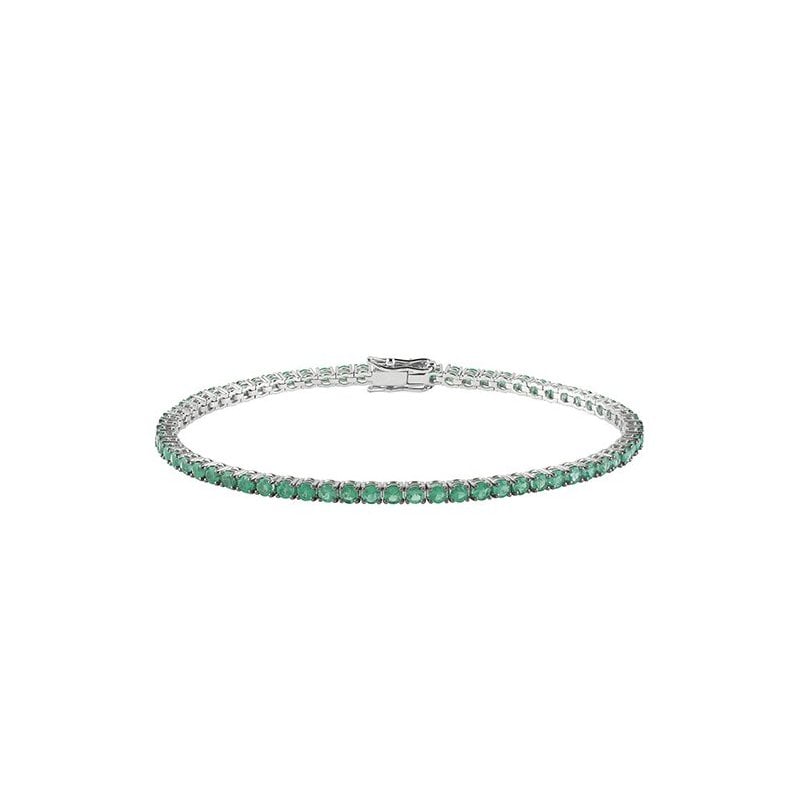 Bracciale tennis in oro bianco con smeraldo da 2.5 ct, firmato Damiani.