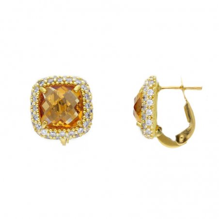 Orecchini a lobo in oro giallo 18 ct con zirconi e quarzo citrino firmati Songa Antonio.