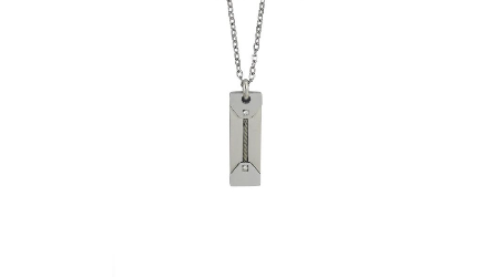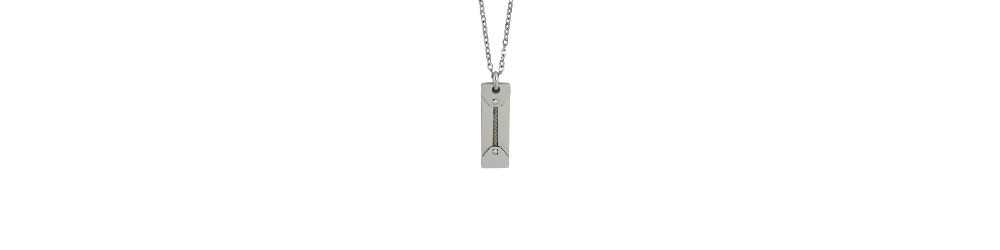 Collana in acciaio con pendente decorato da elemento torchon centrale e zirconi incastonati.