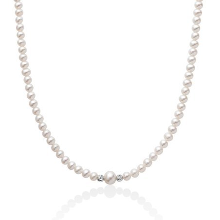 La Collana Di Perle Oriente di Miluna è un gioiello elegante e raffinato, perfetto per ogni occasione. Realizzata con perle vere Oriente di dimensioni 4,5-5 mm e una perla centrale di 7-7,5 mm, questa collana è impreziosita da due sfere intagliate in oro bianco 750. L'oro bianco conferisce un tocco di modernità e lusso, mentre le perle aggiungono un fascino senza tempo. Ideale per chi ama i gioielli classici con un tocco contemporaneo, questa collana è un must-have per ogni collezione di gioielli.