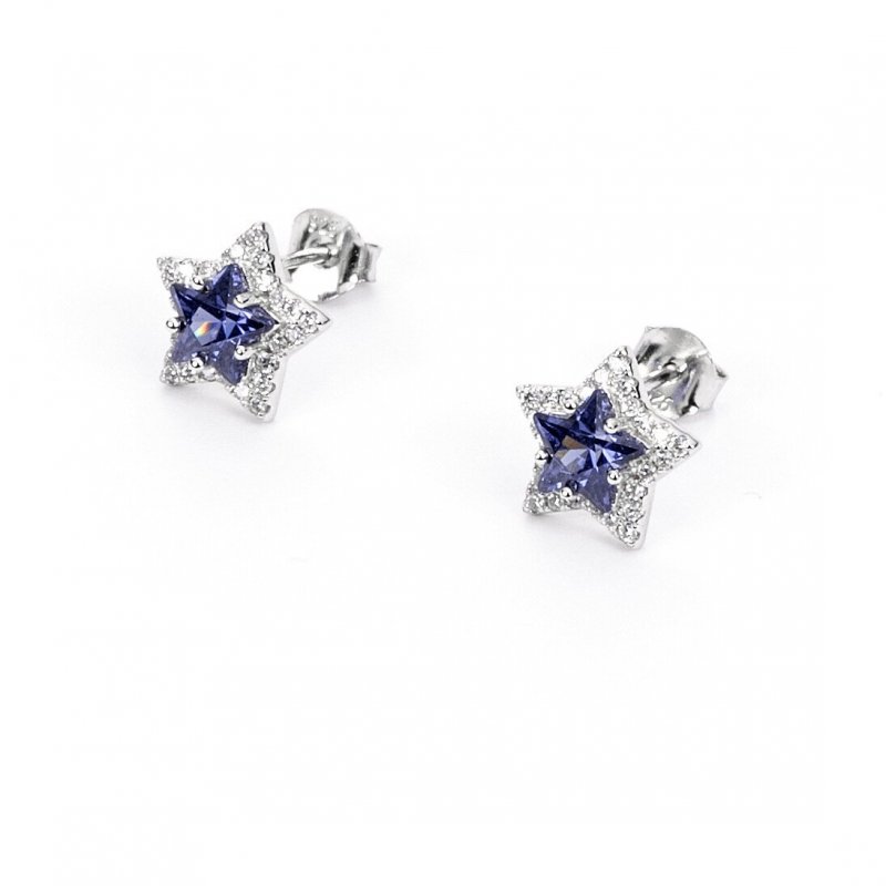 Orecchini Stella Di 4Us Cesare Paciotti In Argento Con Zirconi Bianchi Vetro Blu E Finitura In Rodio. La Referenza È 4Uor5397W