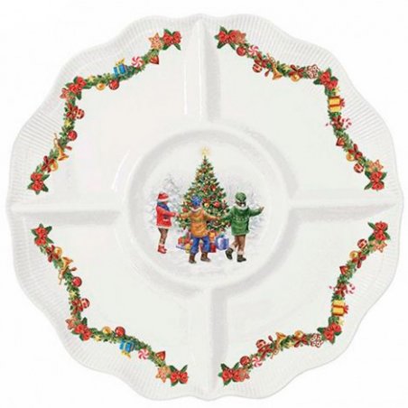Piatto antipasto 30 cm in porcellana, bianco e multicolore, collezione Danza rotonda di Natale.