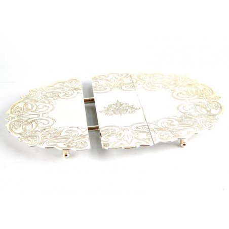 Il sottopentola allungabile in argento Royal Family è un accessorio elegante e pratico per l'intrattenimento. In argento Sheffield, il sottopentola presenta un classico design inciso e un pezzo centrale rimovibile, che lo rende delle dimensioni perfette per qualsiasi piatto che servi.,lunghezza cm 28,5 larghezza cm 21,5 altezza cm 2 peso netto gr 634