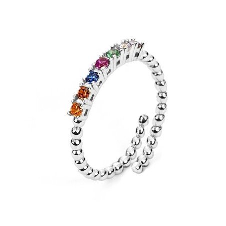 Anello Di 4Us Cesare Paciotti In Argento Con Zirconi Colorati E Finitura In Rodio. Misura Regolabile Dalla 10 Alla 18. La Referenza È 4Uan5412W