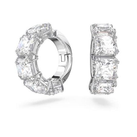 Lo stile essenziale della nostra famiglia Millenia è magistralmente espresso in questi splendenti orecchini a clip. Una fila uniforme di cristalli Cry dal taglio Square è incastonata in una placcatura rodio e crea un armonioso equilibrio tra metallo e cristalli. Un design sfavillante che puoi indossare sia di giorno sia di sera.