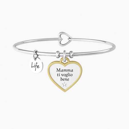 Bangle in acciaio con ciondolo a forma di cuore satinato con bordo dorato lucido, cristallo bianco e frase "Mamma ti voglio bene per ogni cosa speciale che hai fatto per me".• Misura unica, diametro 20 cm• Dimensioni del cuore: 19.97x19.43• Diametro del cristallo: 1.5 mm• Chiusura a cuore• Materiali: Acciaio 316L con PVD giallo lucido, Cristallo bianco