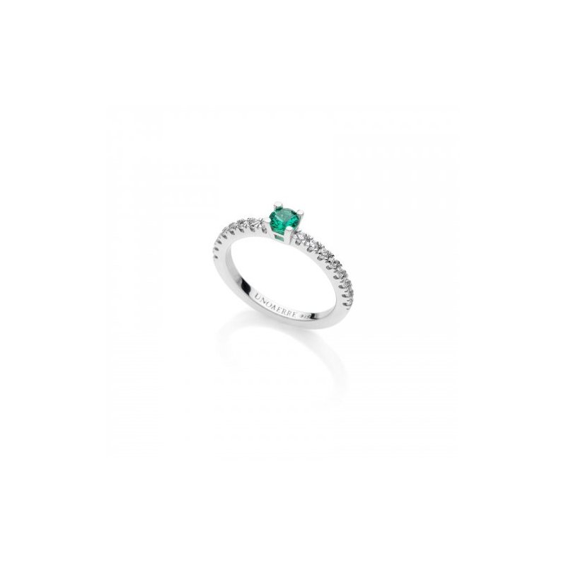 Anello solitario in argento con zirconia verde di Unoaerre, elegante e raffinato.
