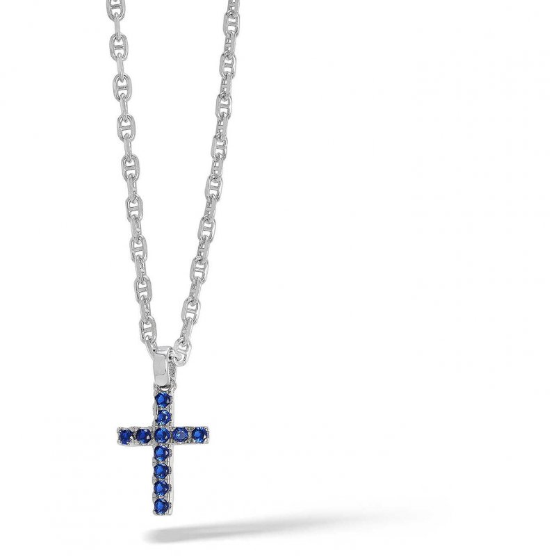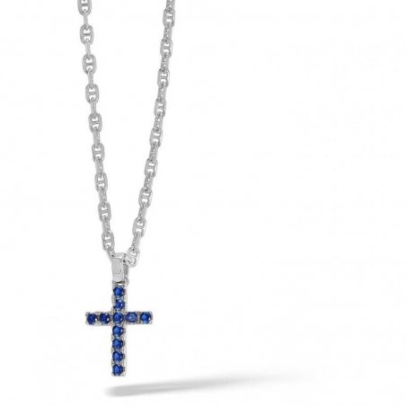 Collana Da Uomo Di Comete Della Collezione Tennis. Girocollo In Argento 925%, Zirconi Blu. Larghezza 11,05Mm . Lunghezza Solo Croce 17,00 Mm. Lunghezza Compresa La Contromaglia . 20,00 Mm. Profondità 1,78 Mm. Lunghezza Catena 50 Cm. La Referenza È Ugl 730