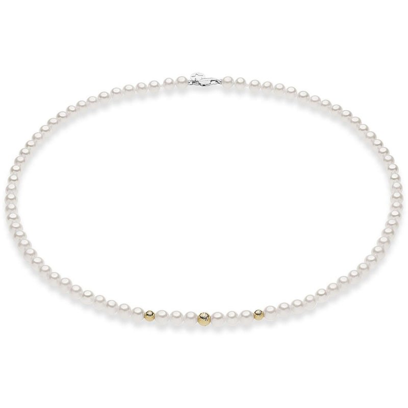 Collana da donna in oro bianco e giallo con perle coltivate, lunghezza 42 cm.