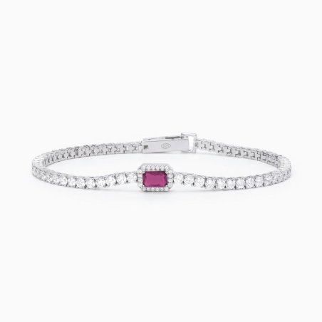 Bracciale tennis da donna in argento rodiato con rubino sintetico e zirconi.