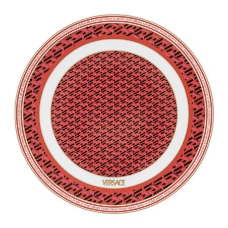 Piatto segnaposto Versace in porcellana, collezione La Greca Signature Red.