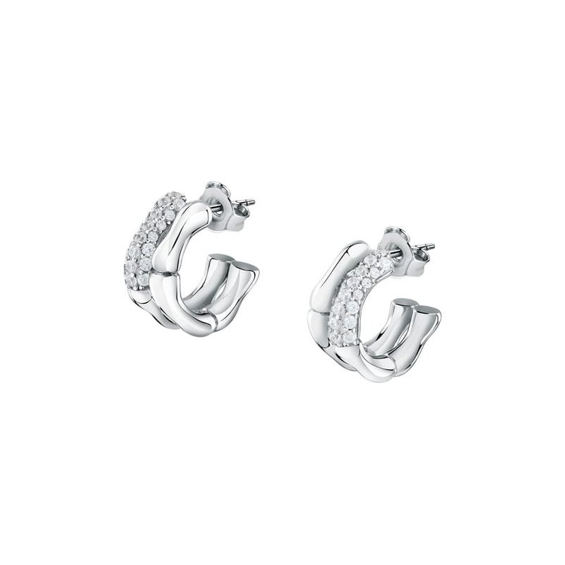 Orecchini a cerchio in argento 925‰ con zirconi bianchi, eleganti e raffinati.