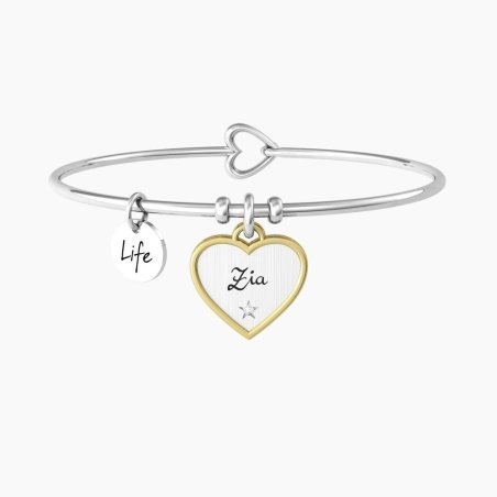 Bracciale rigido Zia in acciaio con ciondolo cuore e cristallo bianco.