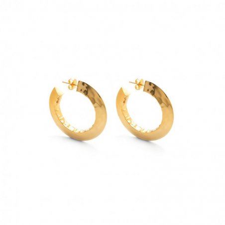 Gli Orecchini Blade di Giovanni Raspini sono realizzati in argento 925 con un elegante bagno d'oro 18 Kt. Ogni orecchino pesa 6,5 grammi e ha un diametro di 4,5 cm. La chiusura con farfallina garantisce sicurezza e comfort. Questi orecchini sono fatti a mano in Italia, riflettendo l'artigianalità e la qualità del design italiano.