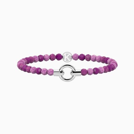 Bracciale elastico componibile in acciaio con agata fucsia striata di Kidult.