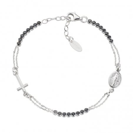 Bracciale in AG925 con zirconi neri - Rodio - Lunghezza 16 + 3 cm .