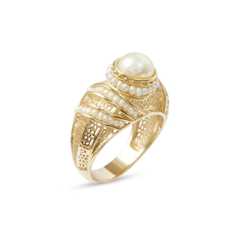 Anello elegante in oro 375/000 con perle di Gerardo Sacco.