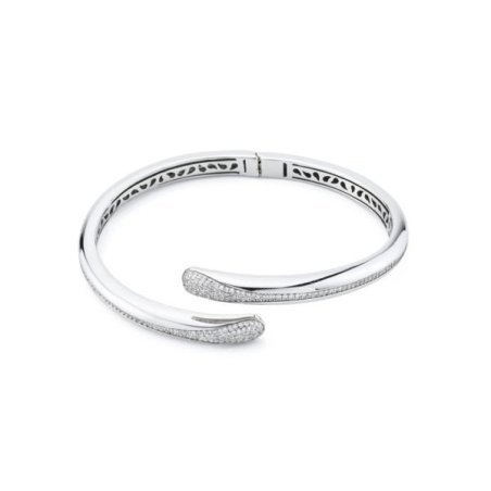 Bracciale contrariè rodiato con doppio pavè di zirconi a forma di goccia.