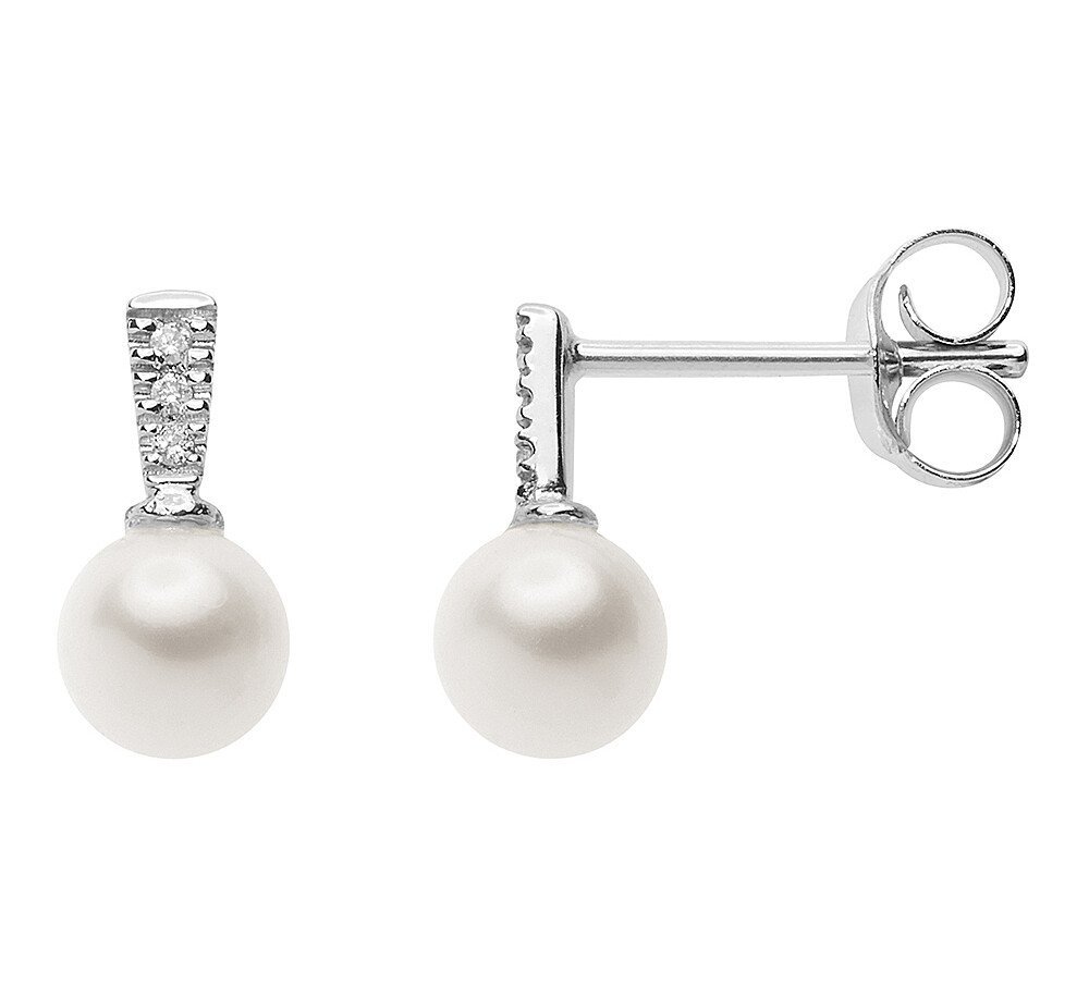 Orecchini in oro con diamanti bianchi della collezione Perle Acquadolce di Comete Gioielli.
