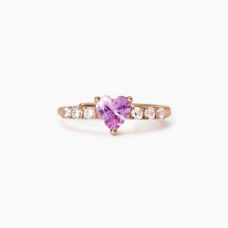 Anello regolabile da donna in argento placcato oro rosa 18K con tormalina sintetica taglio cuore e zirconi bianchi.