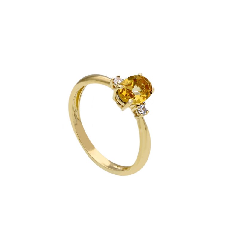 Anello solitario in oro giallo con Quarzo Citrino, peso 2.15g.